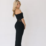 Elevate your style with the Abbi Mesh Maxi Dress. This elegant one shoulder dress is made with a beautiful mesh fabric and ruched detailing, perfect for a night out or special occasion. Look and feel confident in this stunning black dress.