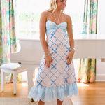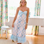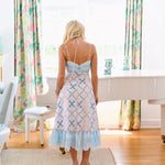 Abbi Multi Midi Strappy Dress - Cream/Blue