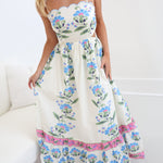Addie Floral Print Cut Out Detail Midi Dress - Cream