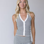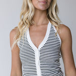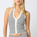 Addie Striped Halter Top - Off White/Black