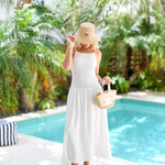 Dress to impress with our Adeline Smocked Midi Dress. The smocked bodice ensures a flattering fit, while the midi length adds a touch of elegance. The solid color and spaghetti straps make it perfect for any occasion. Get ready to turn heads in this stunning off-white dress.