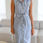 Looking for a classic yet stylish dress? The Aimee Pin Striped Dress-Denim has you covered. Made with high-quality denim, this dress features a timeless pin striped design. You'll love the flattering fit and durable fabric that will last for many wears. Elevate your wardrobe with this versatile and chic dress.
