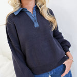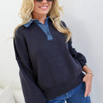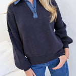 Stay cozy and stylish with the Anna Oversized Sweater in Navy. Featuring a contrasting collar, this sweater offers a relaxed fit that drapes comfortably, making it perfect for layering on chilly days. Its soft fabric ensures lasting comfort, while the subtle contrast detail adds a touch of effortless elegance to your everyday look.