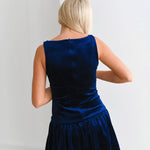 Introducing the Anna Velvet Sleeve Dress-Navy. Designed with soft, luxurious velvet material and long sleeves for a comfortable and chic look. Perfect for any special occasion, elevate your style with this elegant and versatile dress.