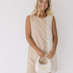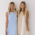 Anne Scallop Button Detail Mini Dress - Ecru/Sand