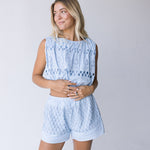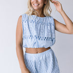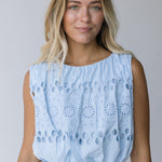 Elevate your summer wardrobe with our Ashleigh Eyelet Top. Featuring beautiful embroidered floral eyelet details and comfortable elastic, this top is perfect for any occasion. Stay stylish and comfortable all day long.