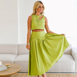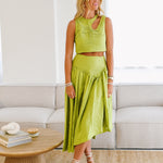Ashley Cut Out Top and Midi Skirt Set-Green