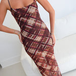 Ashlyn Checkered Maxi Dress - Brown Rust