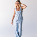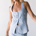 Bea Linen Vest Top - Lt Blue