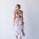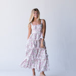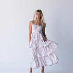 Elevate your summer wardrobe with our Belle Ruffle Tiered Maxi Dress in Pink. The flowy floral print and adjustable straps make for a perfect fit, while the back cutout and self tie detail add a touch of flirty elegance. Enjoy the warm weather in style and comfort.