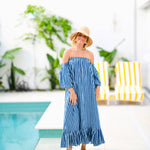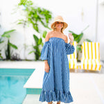 Brit Strapless Bubble Sleeve Maxi Dress - Blue Gingham