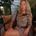 This Brook Stripe Knit Dress in Brown Natural offers a flattering off-the-shoulder design paired with a stylish belted detail, enhancing your silhouette effortlessly. Crafted for comfort and style, it’s a versatile choice that supports your confidence for any occasion.
