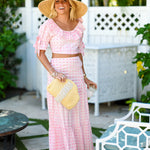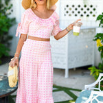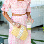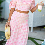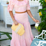 Cabana Ruffle Skirt Set - Baby Pink Blockprint