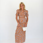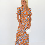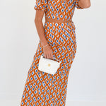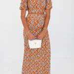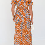 Callie Bubble Sleeve Maxi Skirt Set- Burnt Orange/Blue blockprint
