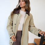 The Cambridge Utility Jacket in Khaki offers a relaxed fit with durable woven cotton and a distinctive contrast corduroy collar. Designed for comfort and practicality, it features long sleeves, front pockets, and both button and zipper closures for secure wear. Inside, the corduroy detail and polyester lining provide added warmth and smooth layering, making it a versatile choice for everyday wear.