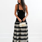 This Stripe Maxi Dress offers a graceful silhouette with its flowing flounce hem and an alluring open back design. Perfect for warm days or special occasions, this dress provides both comfort and style, allowing you to feel confident and effortlessly elegant. Its breathable fabric and relaxed fit ensure you stay comfortable while making a striking impression.