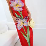 Celine Strapless Floral Maxi Dress - Red