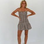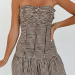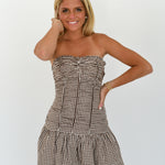 Charlie Checker Ruched Tube Mini Dress - Choco Checker