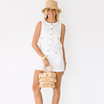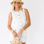 Elevate your wardrobe with the Chyenne Button Down Mini Dress in a timeless ivory shade. This dress features elegant gold buttons that add a touch of sophistication to its classic design. Its flattering mini length and button-down style make it versatile for both casual outings and special occasions. Comfortable and chic, it’s a perfect choice to boost your confidence and style effortlessly.