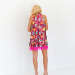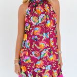 The Daphne Floral Sequin Halter Dress in a vibrant multi-color design combines elegance with a playful touch. Its sleeveless halter style offers a flattering fit, while the delicate floral sequin overlay adds a shimmering detail perfect for special occasions. This dress is designed to make you feel confident and radiant wherever you go.