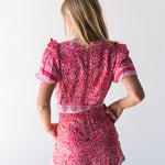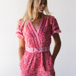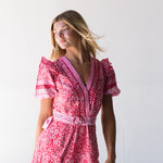 Be the life of any occasion with our Daphne V-Neck Romper in charming red and pink. Its floral design and deep v-neckline with buttons add a touch of elegance, while the waist belt and ruffled short sleeves keep it playful. Be confident and prepared for anything in this versatile romper.