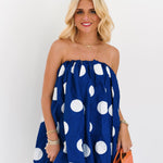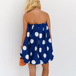 Be stylish and playful with our Darcy Mini Bubble Dress in navy! This strapless bubble mini dress features a fun and trendy two-toned green polka dot design. Perfect for a night out with friends or a casual day out, this dress will make you stand out in the crowd. Feel confident and look fabulous in this one-of-a-kind dress!