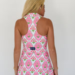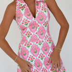 The Delanie Athletic Dress in Pink Floral combines style and functionality, featuring built-in shorts for comfort and coverage during active movement. Its front zipper and collar add a modern touch while allowing easy wear and adjustable ventilation. Perfect for staying confident and comfortable whether on the court or running errands.
