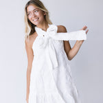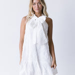 Elevate your summer wardrobe with our Dixie Halter Neck Mini Dress. Its halter neck and bow detailing add a touch of elegance, while the textured fabric provides a unique and stylish look. Perfect for any occasion, this dress is a must-have for your collection.