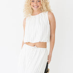 Transform your look with our Stripe Cropped Bubble Top W/ Matching Maxi Skirt. With a flattering cropped silhouette and a matching maxi skirt, this set is perfect for effortlessly elevating your style. The comfortable and lightweight fabric will keep you feeling comfortable and chic all day long.