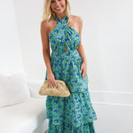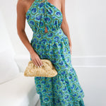 Dorothy Criss Cross Halter Neck Maxi Dress - Blue/Green