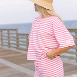Enjoy a cool and fashionable summer with our Fancy Striped Buttoned Short Sleeve Top. This striped tee offer a refreshing comfort while bringing a refined look to your seasonal wardrobe. Ideal for any summer event and great for transitioning between seasons, they are an essential piece for both style and ease.