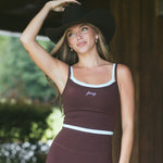 Discover the Fancy Fit Double layered in Glacier and Leather, designed for comfort and style. These double layer tank offers a flattering fit that moves with you. Perfect for active days or casual outings, it combines practicality with a look to keep you feeling confident and supported.