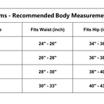 XS - 24"-26" (waist) / 34"-36" (hips)