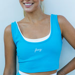 The Fancy FitFlow Performance Bra Top in Poolside blends the support of a sports bra with the ease of a cropped tank. Designed for comfort and style, it’s ideal for relaxing or hitting the gym with confidence. Enjoy a comfortable, athletic look that moves with you throughout your day.