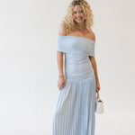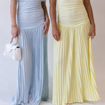 Introducing the Sara Strapless Drop Waist Maxi Dress! Show off your shoulders and rock the pleated hem in our Elina Drop Dress. Perfect for any occasion, this dress will make you feel effortlessly chic and stylish. Available in a beautiful butter and blue color.