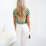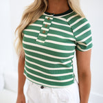 Madi Striped Short Sleeve Tee - Cream/Green Stripe