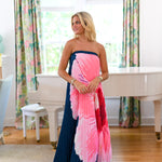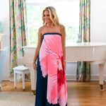 Madison Printed Pleated Maxi Tube Dress - Navy/Pink