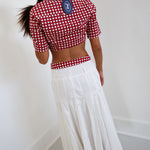 Maning Double Layer Pleated Maxi Skirt - Crimson/White Gingham