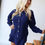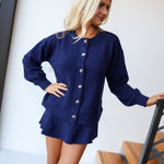 Marleigh Button Down Knit Sweater & Mini Skort Set - Navy