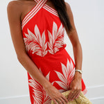 Mary Printed Halter Mini Dress - Tomato Red