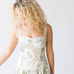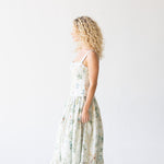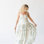 This charming midi dress features a lovely floral pattern and a flattering corset-style top. It's perfect for any occasion, offering a timeless and chic look. Embrace your inner fashionista with this comfortable and stylish light green dress.