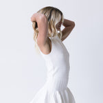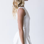 Embrace a flirty and feminine look with our Meadow Mini Dress in Off White. This charming dress features a playful ruffled hem and comfortable sleeveless design. Perfect for any occasion, this mini dress will have you feeling confident and stylish all day long.