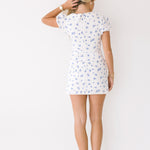 Meadow Peter Pan Collar Mini Dress - White/Blue Floral
