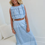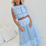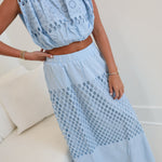 Mila Embroidered Eyelet Maxi Skirt Set - Lt Blue