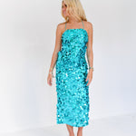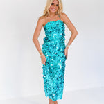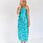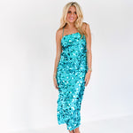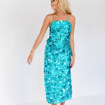 Monique Sequin Spaghetti Strap Midi Dress - Turquoise