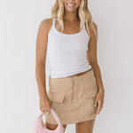 Effortlessly chic, the Naomi Pocket Mini Skirt in Taupe is a must-have for any wardrobe. Featuring a zipper closure in the front and pocket details, this skirt is both stylish and functional. Perfect for any occasion, it will keep you looking and feeling your best.