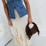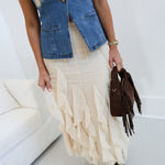 Natalie Tiered Ruffle Lace Midi Skirt - Natural