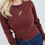 This long sleeve sweater tee combines softness and style with its printed olive color, adding a fresh touch to your wardrobe. Its relaxed fit and cozy texture make it comfortable for all-day wear, whether layered or worn alone. Effortlessly versatile, it pairs beautifully with jeans for a casual look or a maxi skirt for a boho-chic outfit. This piece is designed to support your style and comfort every day.