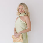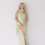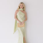 Nyla Asymmetrical Halter Scarf Dress - Light Sage