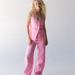 Stay cool and stylish this summer with our Peyton Linen Vest Top in a gorgeous pink color. The sleeveless design and back tie waist make it perfect for any occasion. Feel confident and comfortable while looking effortlessly chic. Upgrade your wardrobe with this must-have piece.